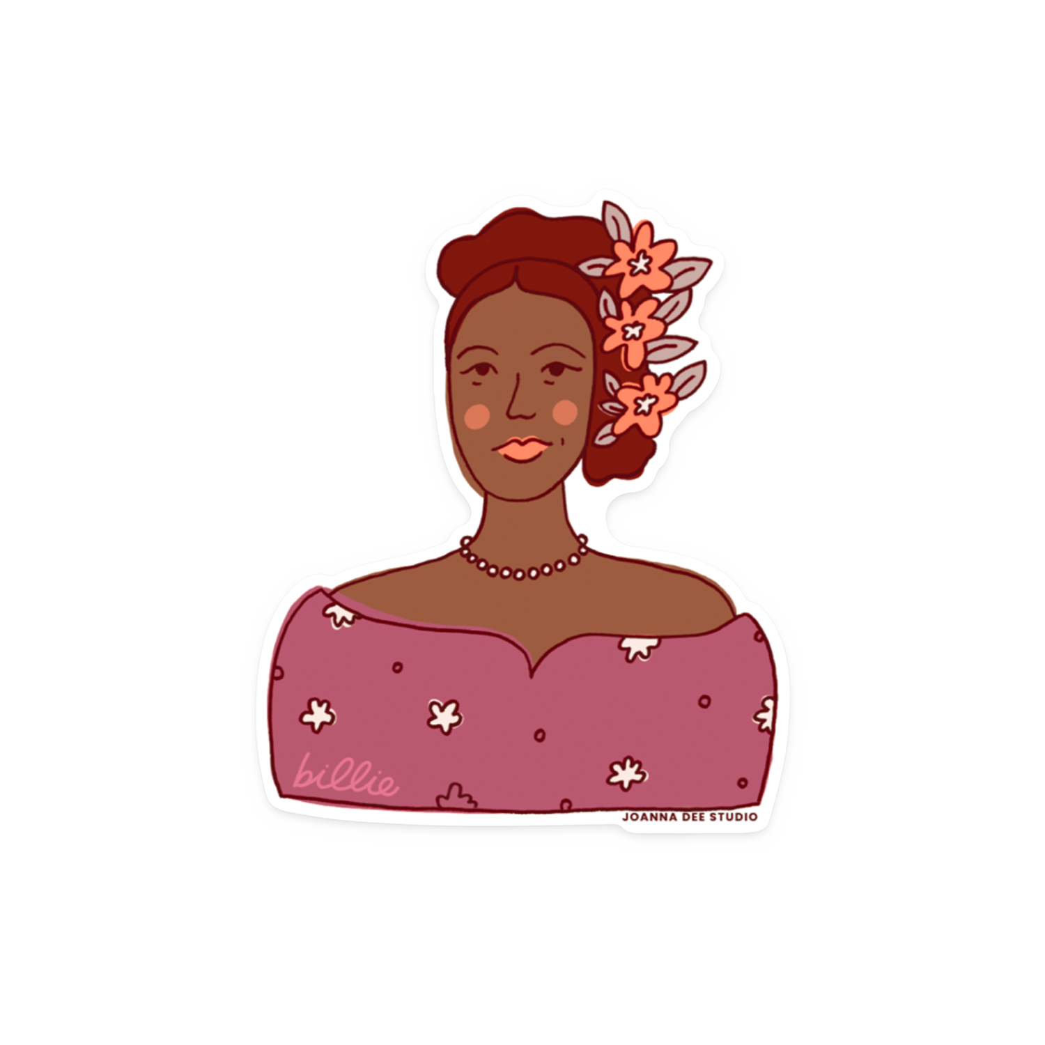 Share your love of Lady Day, Billie Holiday, with this vinyl sticker. Printed on high-quality matte vinyl that is scratch-resistant and waterproof making this sticker made to last! Brighten up your water bottles, notebooks, computers, and more.