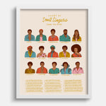 Featuring illustrations of Al Green, Marvin Gaye, Aretha Franklin, Teddy Pendergrass, Gladys Knight, Curtis Mayfield, Mavis Staples, Stevie Wonder, James Brown, Diana Ross, Nina Simone, Ronald Isley, Bill Withers, Pattie LaBelle, Eddie Levert.